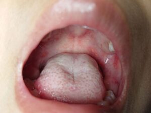 • Mouth and Throat Sores: This illness is characterized by small, blister-like sores found specifically in the back of the mouth and throat. These sores can be quite painful and may make swallowing difficult for your child.